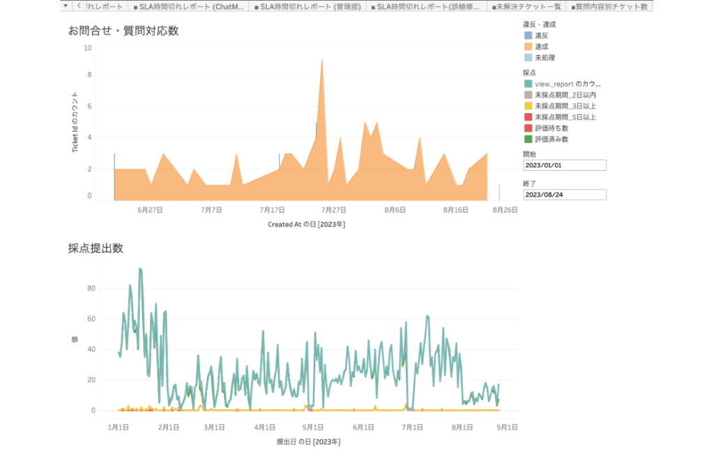 お問合せ・質問対応数を可視化することで、繁忙期がいつかわかるように