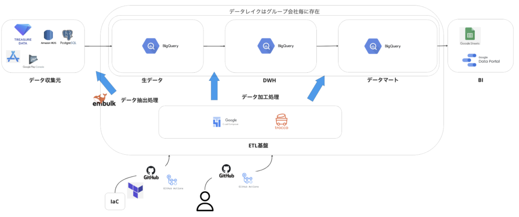 TROCCO®を組み込んだデータ分析基盤の構成図