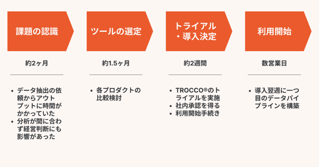 導入コスト、運用コストも抑えられているため、社内からの承認はスムーズに得られ、無事に「TROCCO®︎」の導入が決定しました。