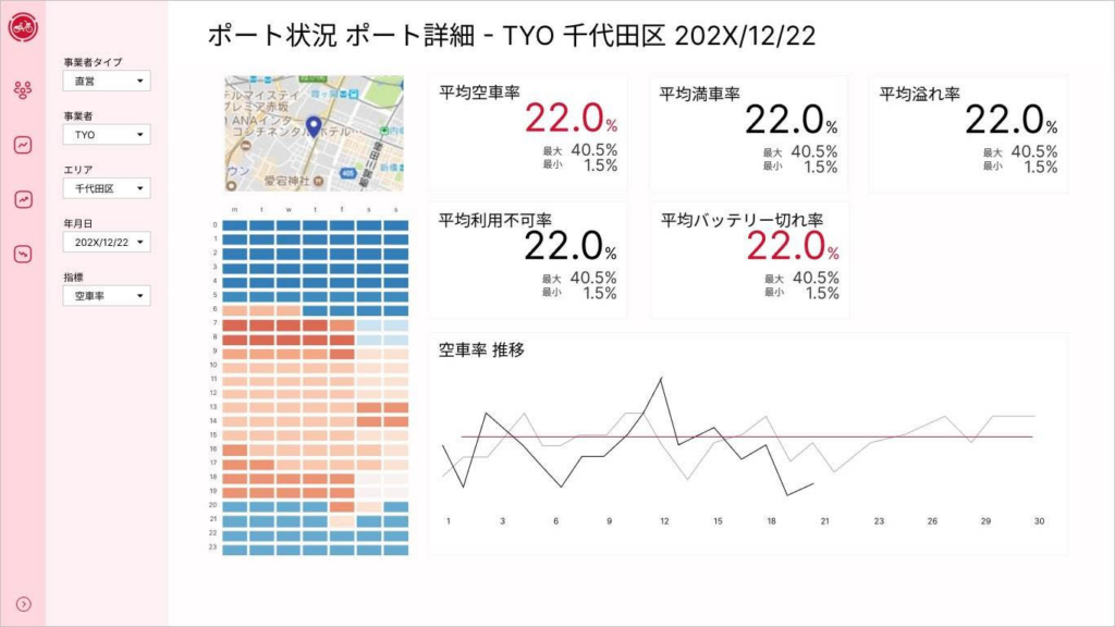 野口:自転車やポートを管理するため、どこのポートで、どれだけの自転車がいつ貸し出されているか、ポートに1台も自転車が置かれていない状況が続いていないかをデータで取りまとめています。