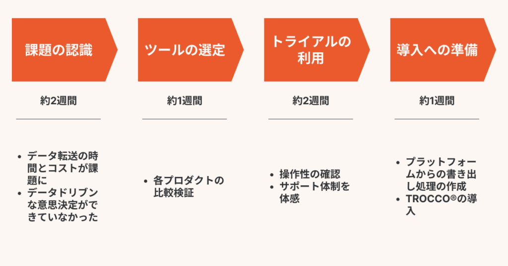また、事業拡大のための意思決定のスピードを上げる必要があり、そのためにはデータのスムーズな活用が課題でした。