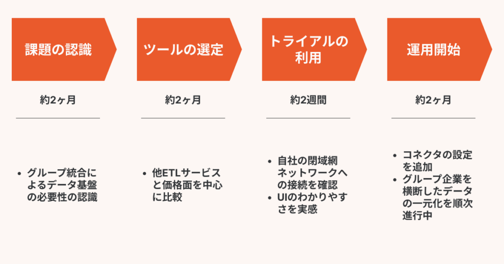山本:スムーズに社内合意が得られたのは、他社のETLツールと比べてイニシャルコストが段違いだったからです。初めてETLツールを導入するため、やはりスモールスタートで検証していきながらデータパイプラインの構築を進めたいと考えていました。