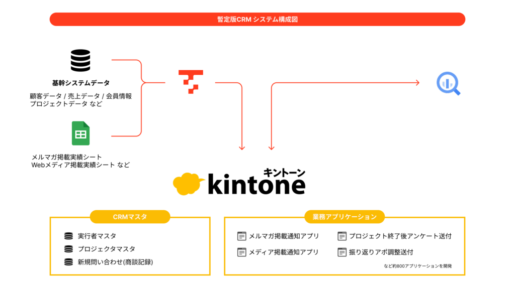 他の製品とも比較しましたが、多くの社員が手軽に使え、すでに導入していたTROCCOにkintoneコネクタがあったことから、「あるものを組み合わせたらできそうだ」という発想で作ってみることにしました。そうして、2022年頃にkintoneをベースにしたCRM構築を本格的にスタートしました。