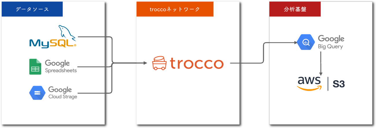 特殊な例だと、dキッズなどのキャリア向けプラットフォームはメールベースでPDFで売上が届くので、それらをスプレッドシートにまとめ、スプレッドシートからTROCCO®経由でBigQueryにまとめるような転送ケースもあります。