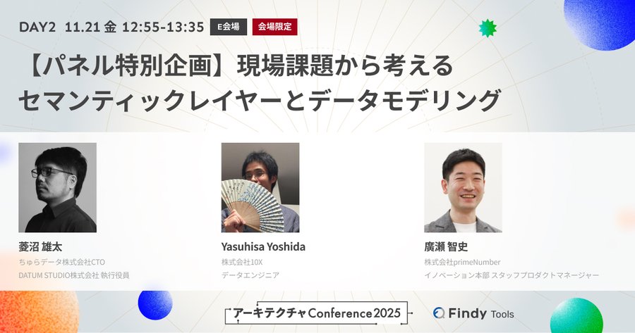 セッション概要:AI/LLM時代に注目されるセマンティックレイヤー。しかし実際の導入では、データモデリング・定義の整合性・組織横断の連携など、避けて通れない現場のリアルな課題と向き合う必要があります。本パネルでは、セマンティックレイヤーを切り口に、現場で直面する試行錯誤や、定義の所在・責任の分断、複数システム間の不整合、自然言語化の限界、構造化の工夫などを共有。データ基盤の設計者とプロダクト開発者の視点で、それぞれ何を乗り越えてきたのか、そしてどんな展望を描いているのかを語ります。単なる技術論にとどまらず、プロダクト開発やデータ基盤構築における「データとは何か」を、具体的な課題と工夫を通じて掘り下げます。