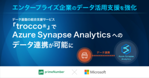 株式会社primeNumber(本社:東京都品川区、代表取締役CEO 田邊 雄樹)が提供するデータ基盤の総合支援サービス「trocco®」により、マイクロソフト社が提供するデータウェアハウス「Azure Synapse Analytics」へのデータ連携が可能になりました。これにより、部署・部門やシステムごとに分断されていたデータをAzure Synapse Analyticsに集め、蓄積し、ビジネスの現場で分析・活用することが可能になります。初夏にはデータを変換および集計するデータマート機能も提供予定です。また、今後はPublic IPアドレスを介さず、より安全にデータを転送することができるAzure Private Link接続オプションもAzure Synapse Analyticsに対応する予定です。