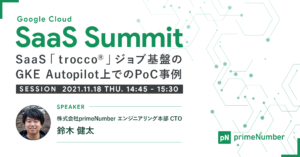 今回、primeNumberは「SaaS Summit」に登壇し、自社プロダクトのGKE AutopilotでのPoC事例を紹介いたします。サービス導入を検討されているエンジニアの方々の参考にとなればと考えております。