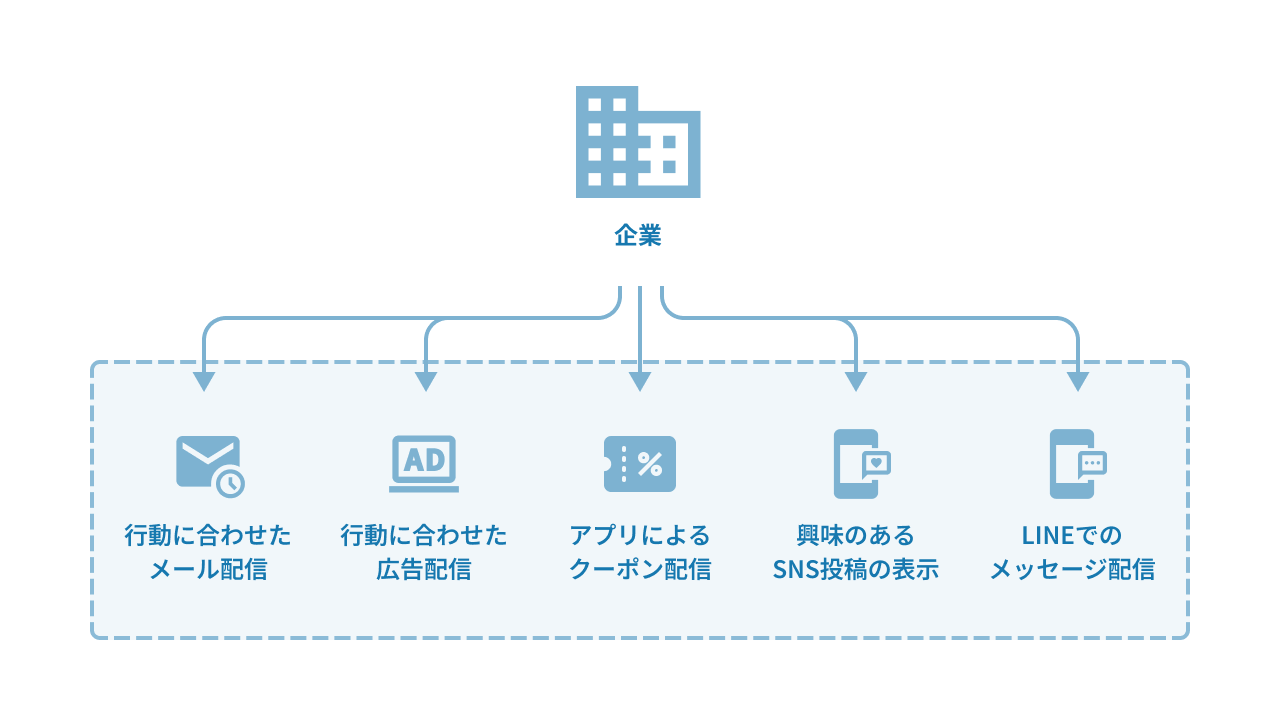 顧客の行動や属性の変化をCDCによってニアリアルタイムにデータ基盤へ反映することで、 状況に​応じた​メール配信や​広告表示、​クーポン配信などの​アクションを​タイムラグなく​実行できます。​