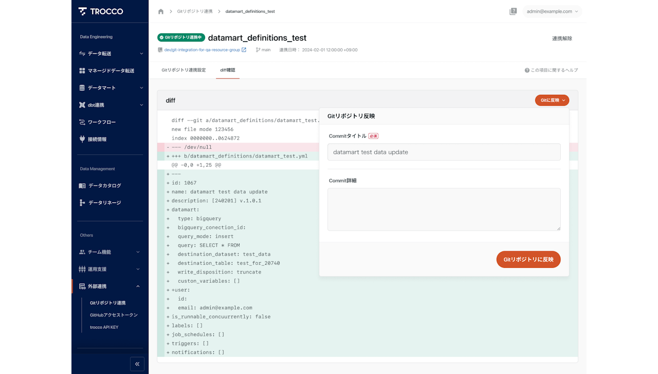 データ転送設定をYAML形式でGitに連携